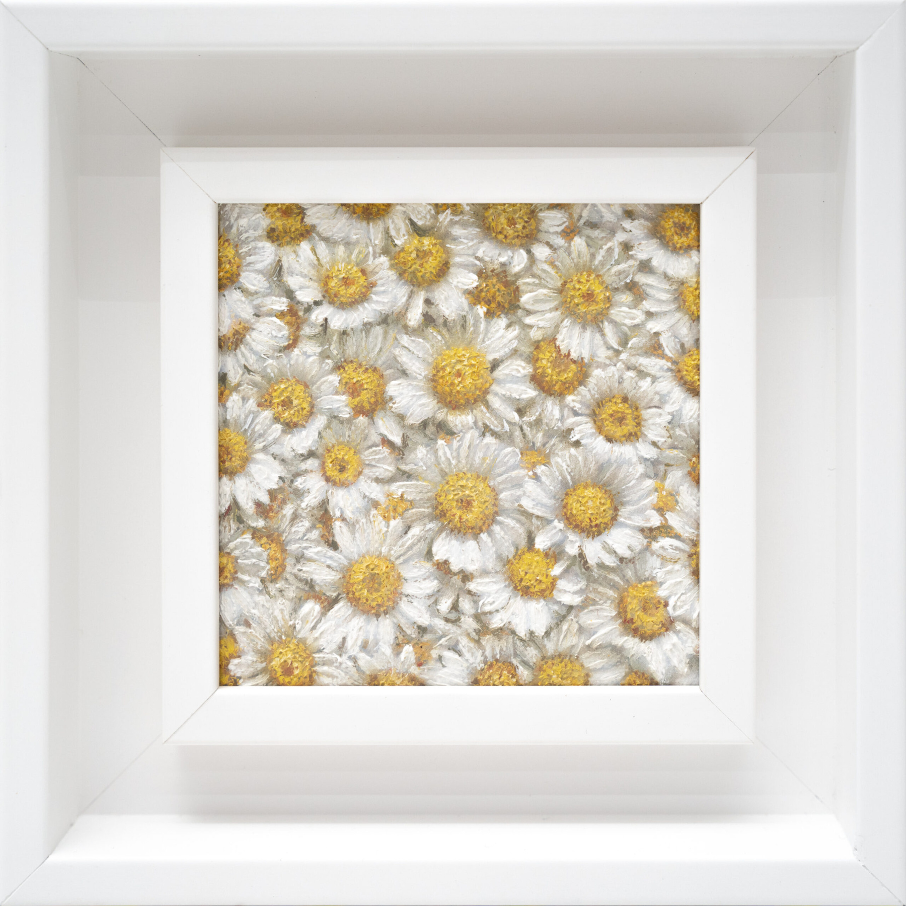 The painting can be displayed individually or as part of a curated series of small floral works, adding a touch of elegance, calm, and natural beauty to any interior. The soft textures and luminous white petals make it a perfect piece for intimate viewing, meditation, or creating a peaceful corner in your living space.